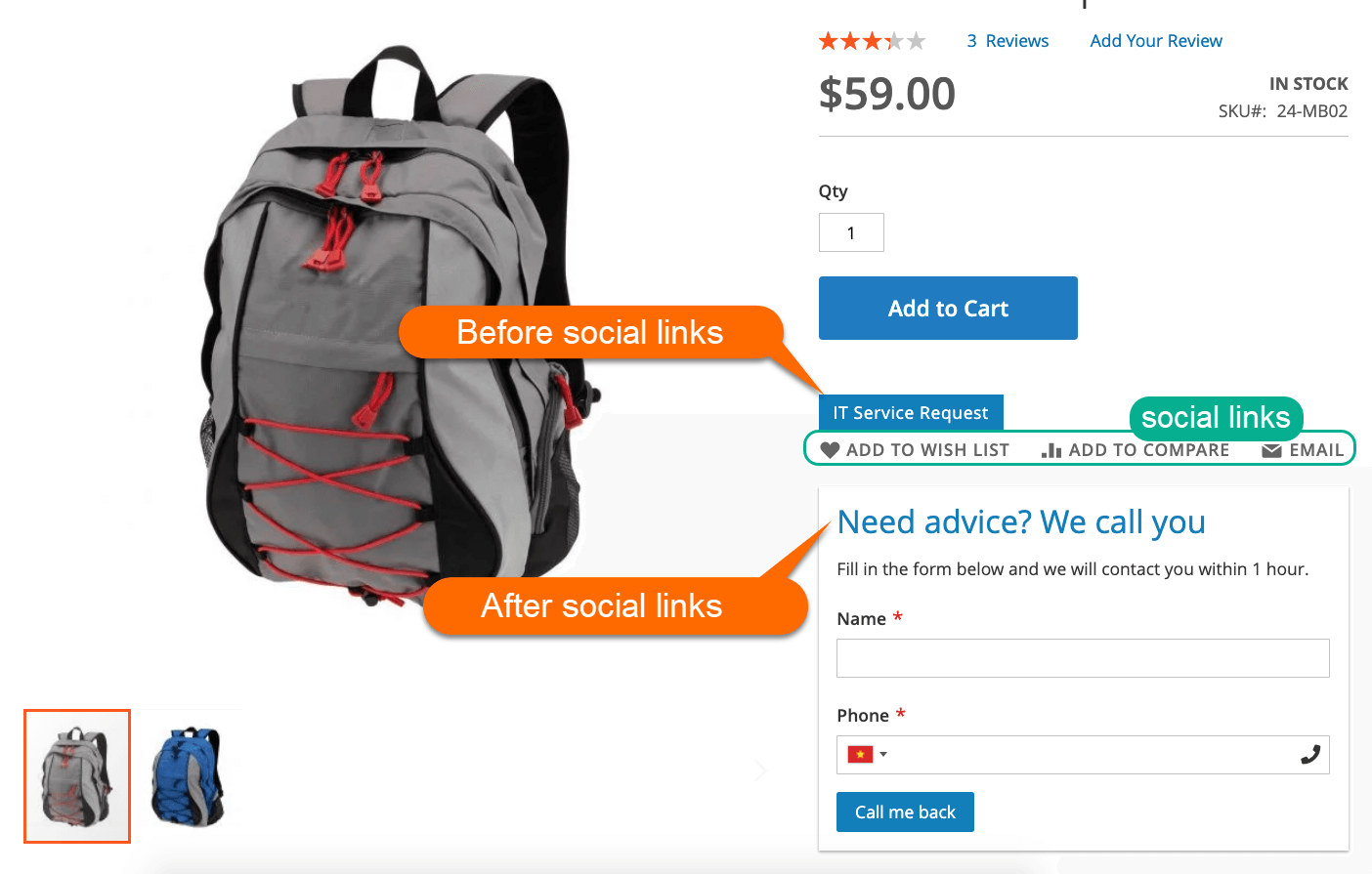 If you do not find your wanted positions to display the form on product page, you can contact us and we will help you.