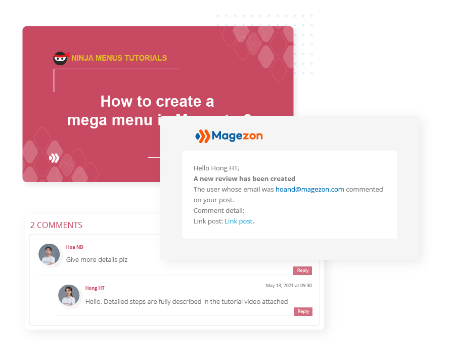 - Email to the commenter whose comment is being replied